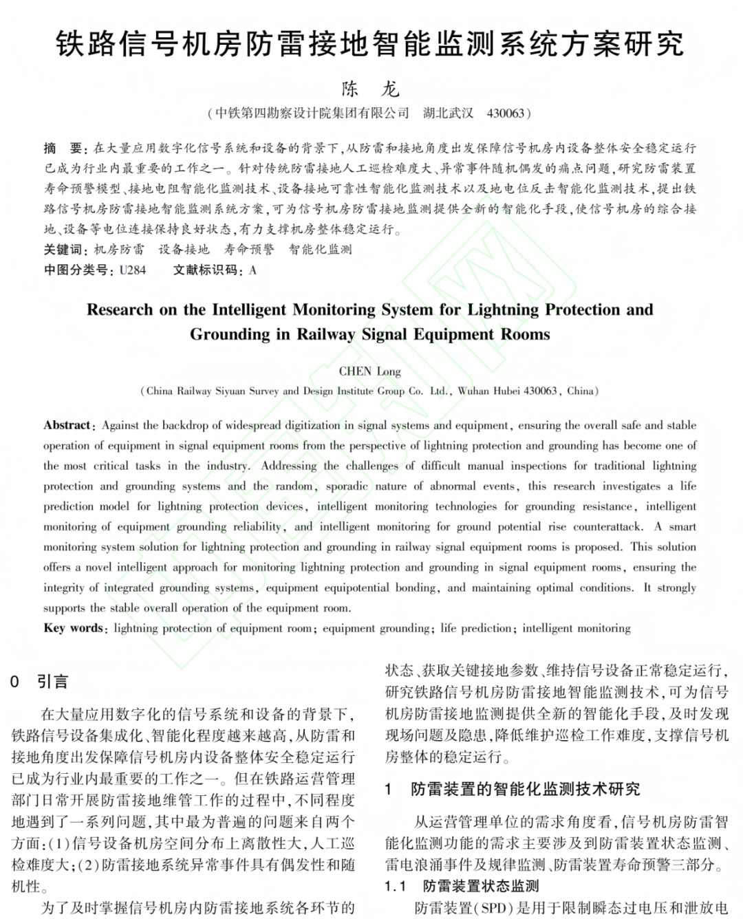 下载全文:铁路信号机房防雷接地智能监测系统方案研究.pdf