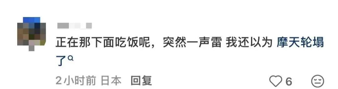 多位身处日本大阪的华人在社交平台表示,25日晚的雷电令人害怕。有人回忆:“当时正在摩天轮下用餐,突然一声巨雷,我还以为摩天轮塌了。”也有网友称:“昨天的雷电实在太可怕,完全被吓到了。”