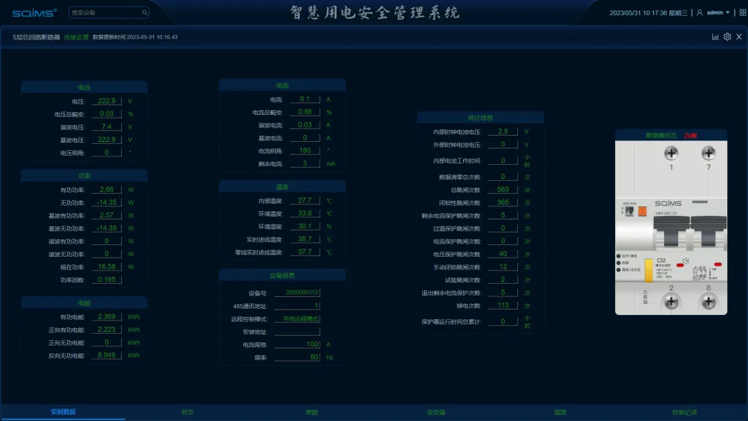 物联网断路器:实时采集电压、电流、功率、谐波、电量等全维度电能数据,并集成过载、短路、漏电、超温等保护功能。