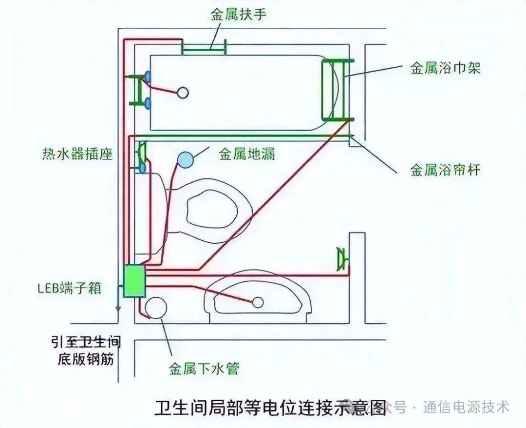 对于住宅楼,国家规定:所有的卫生间都要设置辅助等电位联结。