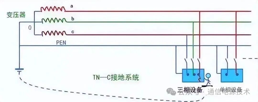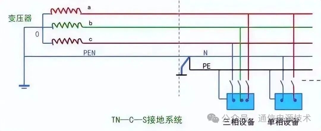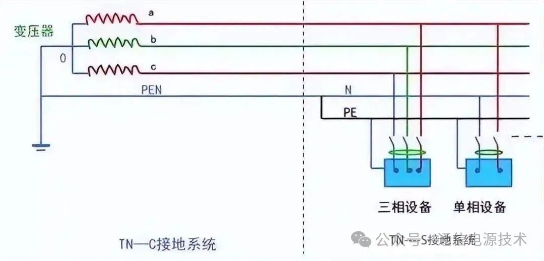 依据设备外壳如何与电源接地点引出线连接,可分为多种TN接地系统。