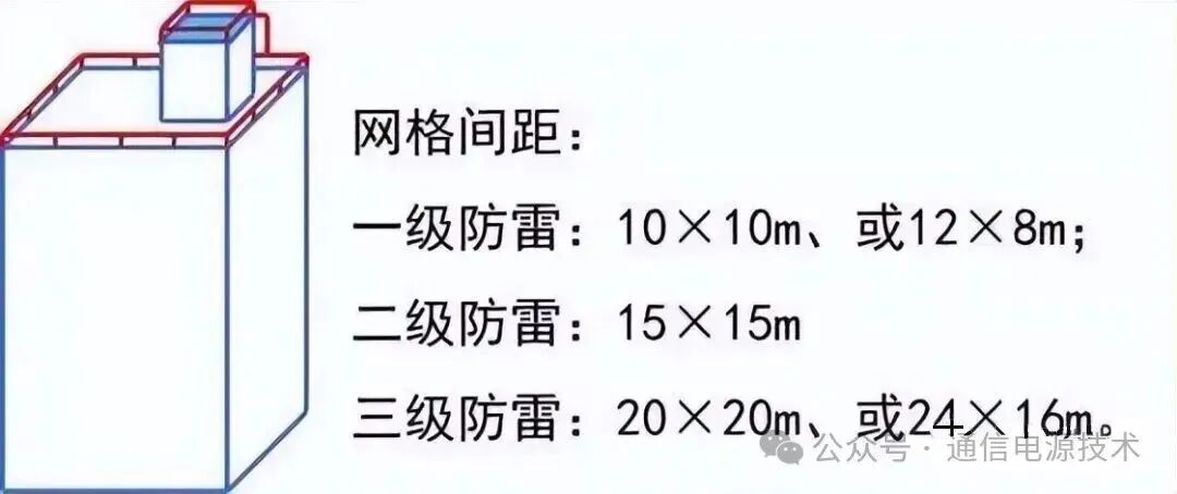 避雷带、避雷网:在建筑物的四周边缘、顶部等布置避雷带、避雷网。