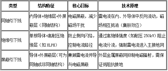 1) 同轴vs. 屏蔽: 同轴引下线是屏蔽引下线的子类,其特殊性在于严格同轴结构,确保电流对称分布;而屏蔽引下线可能仅为单层屏蔽,无对称电流要求。