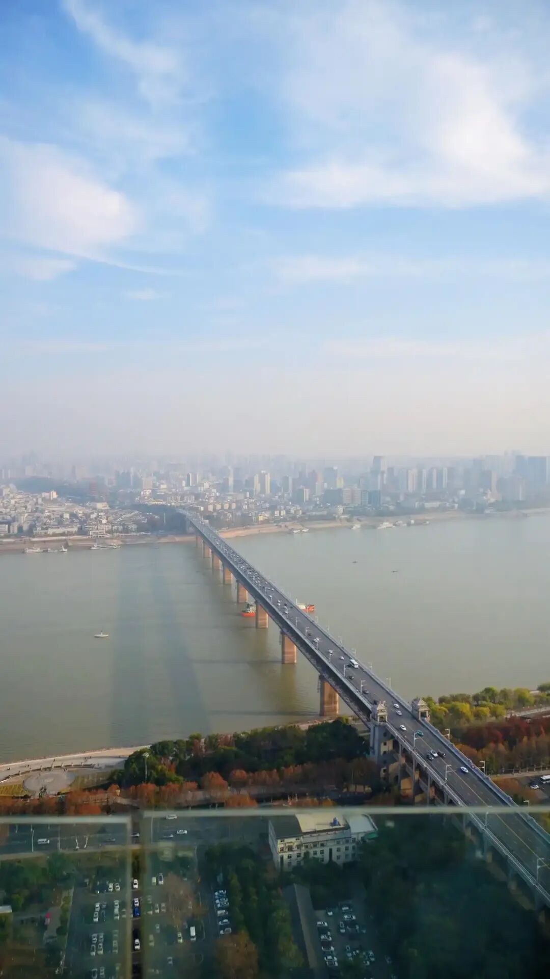 从七楼户外观景平台俯瞰长江大桥。©符程郡