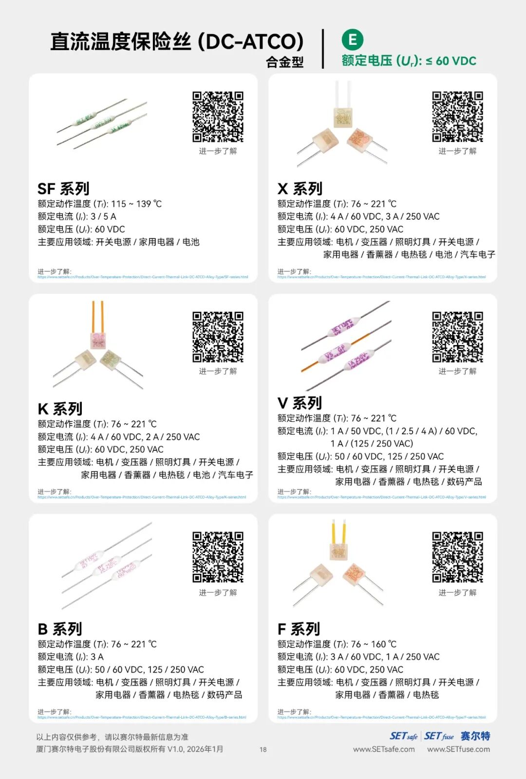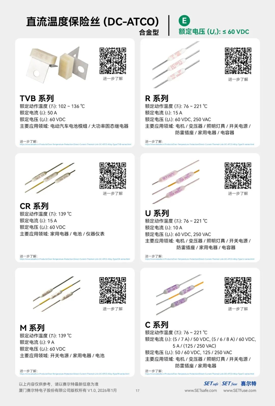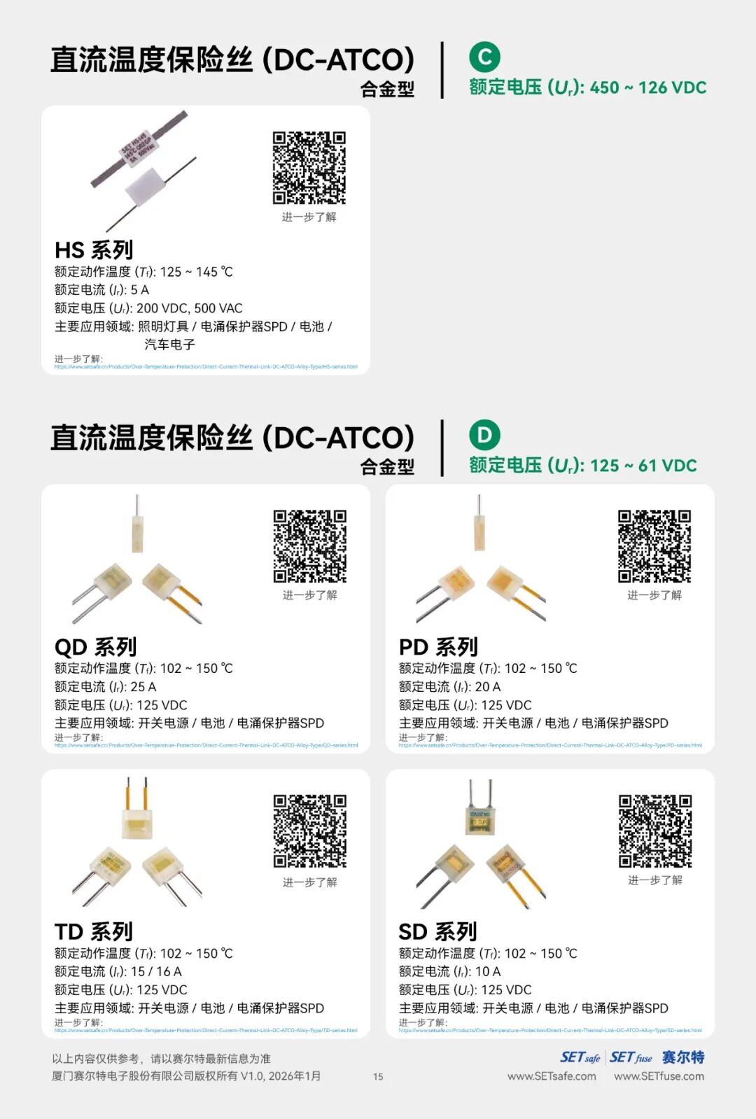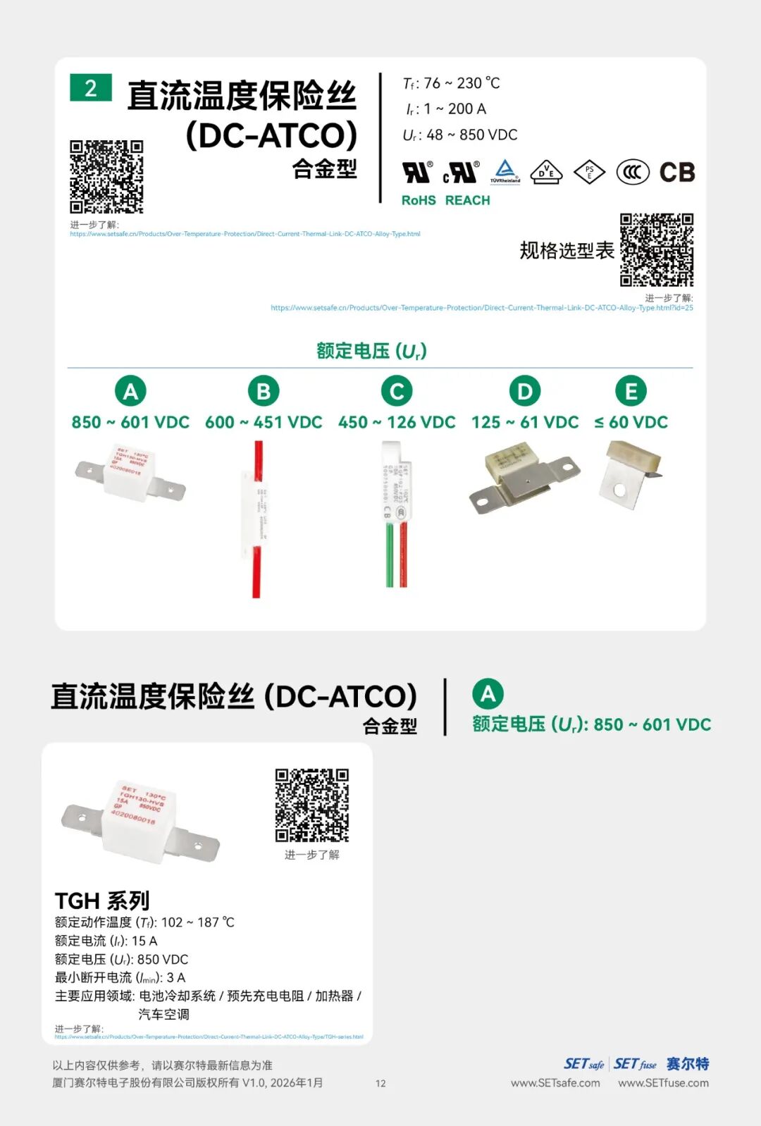 赛尔特公司(SETsafe | SETfuse)的直流温度保险丝-合金型(DC-ATCO)分为: