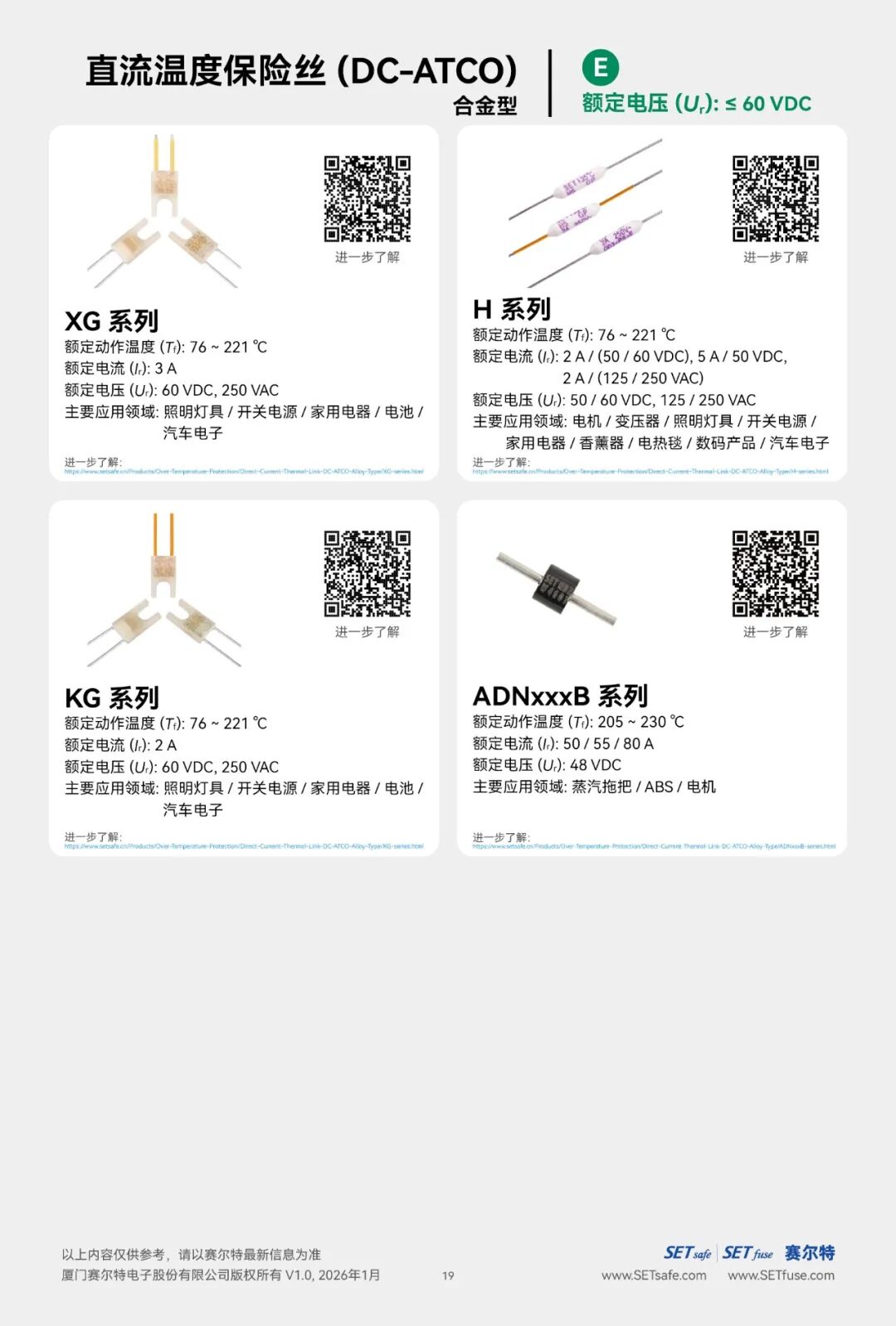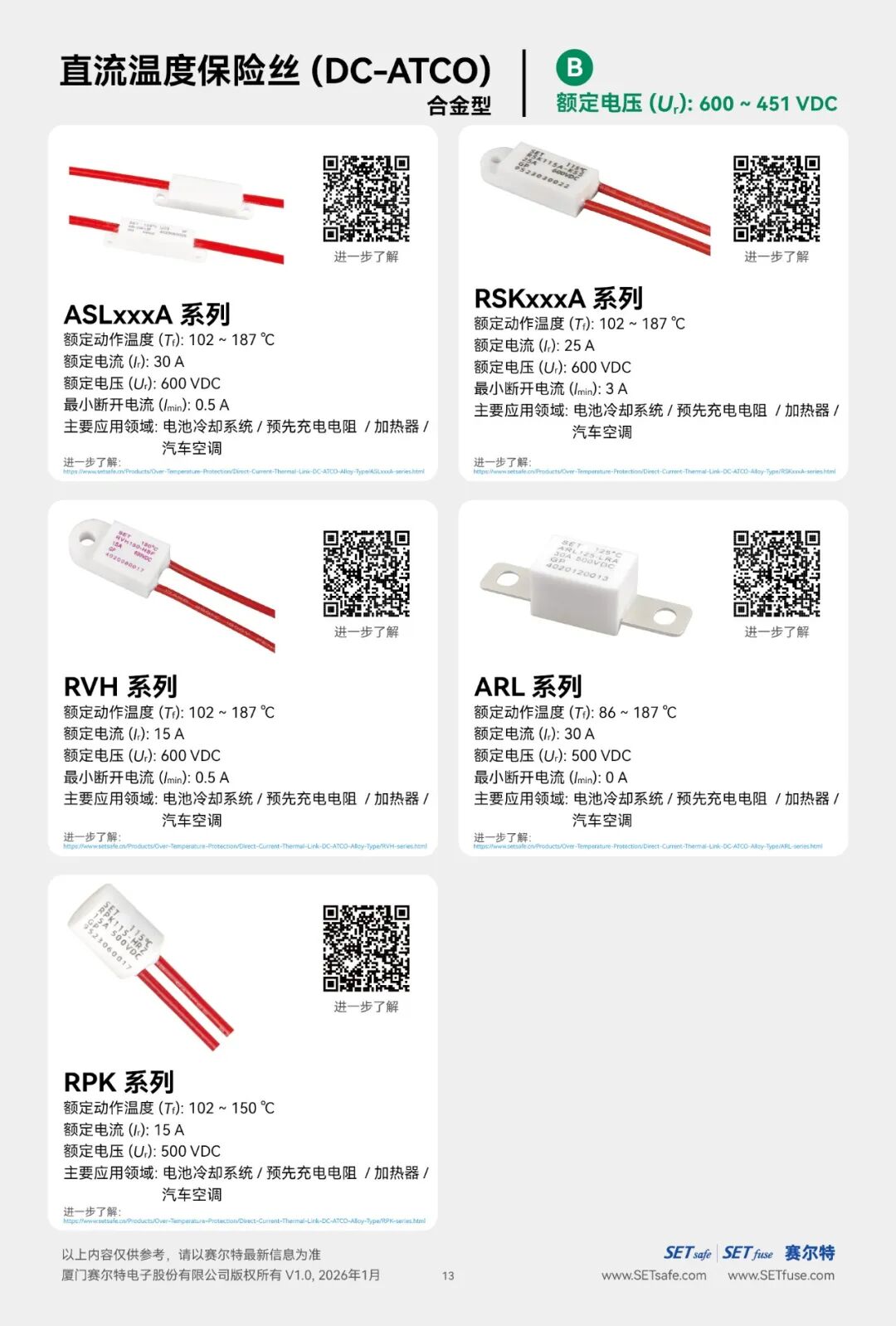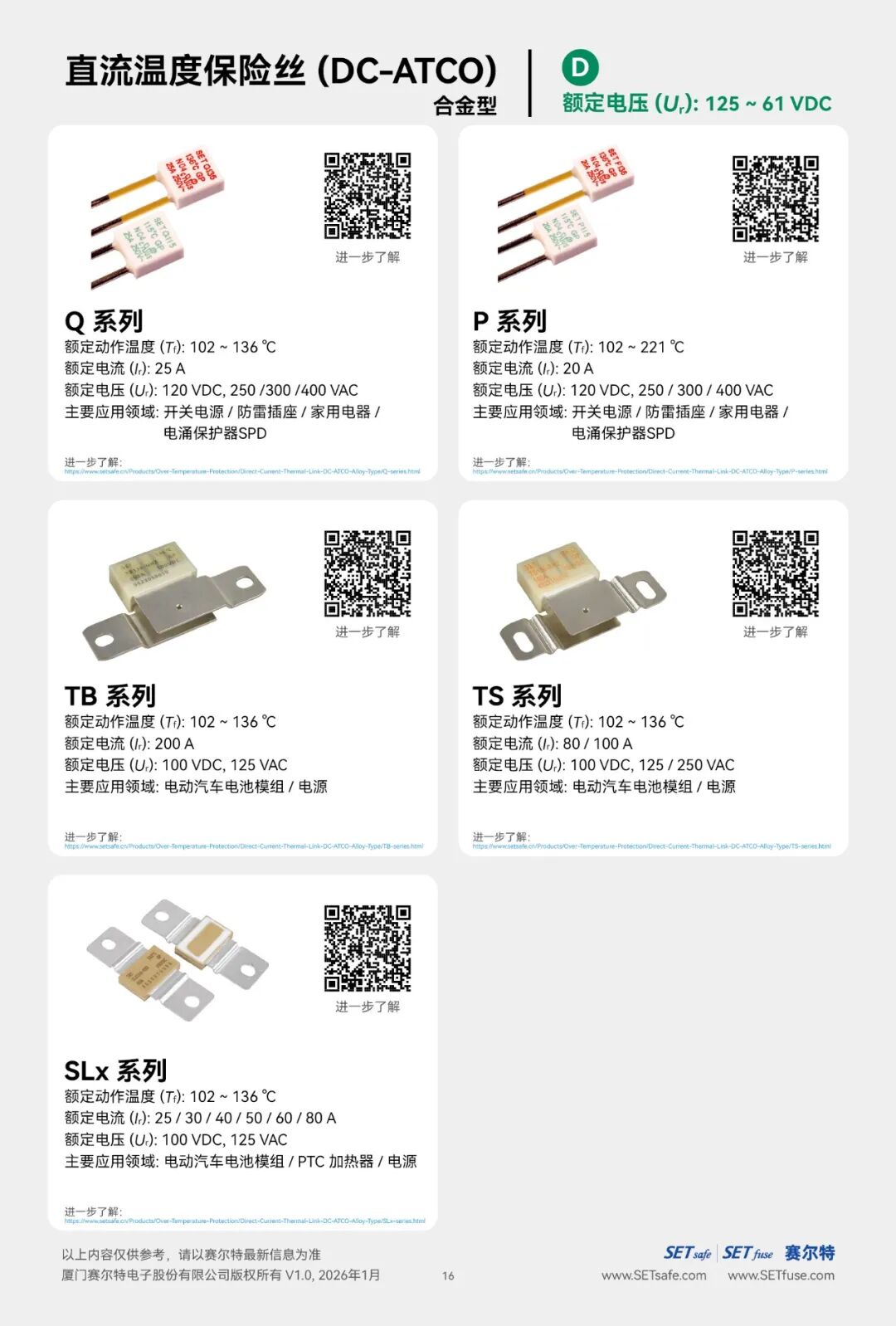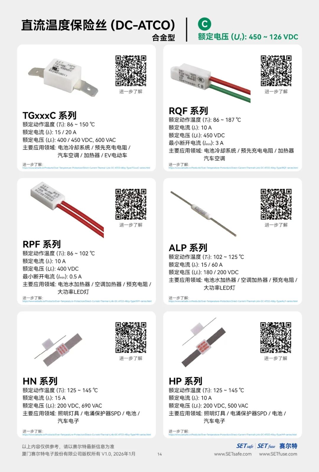 赛尔特公司(SETsafe | SETfuse)的直流温度保险丝-合金型(DC-ATCO)分为:
